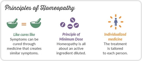 Homeopathy is based on the principle that ‘like cures like’ – in other words, a substance taken in small amounts will cure the same symptoms it causes if it was taken in large amounts.